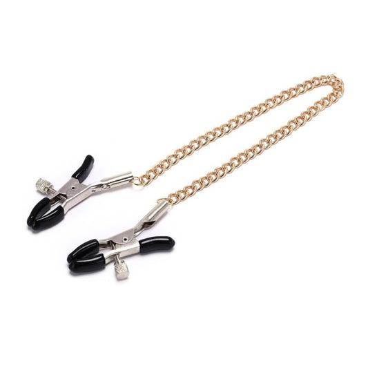 Adjustable Nipple Clamps with Gold Connecting Chain and Black Tips