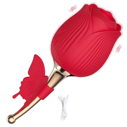Rose Clitoral Suction Vibrator with Butterfly Handle Soul Snatching Sex Toy