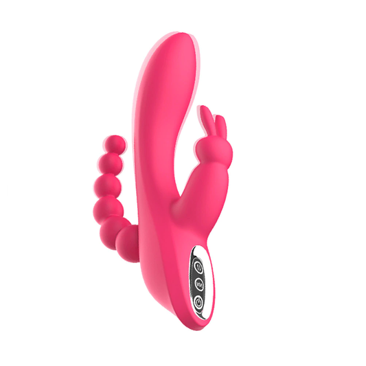 Silicone Rabbit Vibrator Double Penetration Anal Beads USB Rechargeable Pink