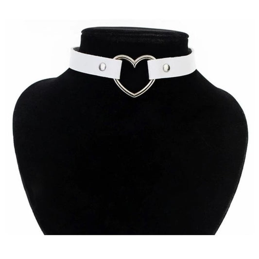 White Heart Shaped Neck Choker Submissive Day Collar