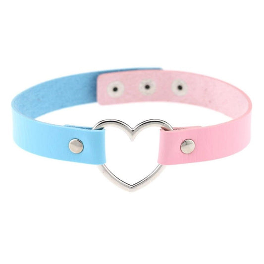 Baby Blue & Pink Heart Shaped Neck Choker Submissive Day Collar