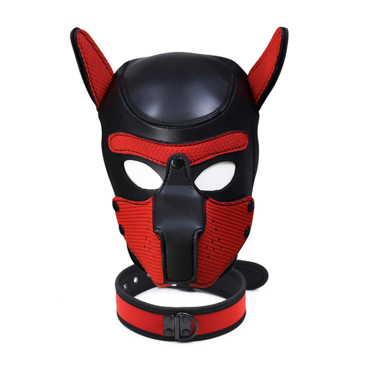 Pup Hood Kit Harness Collar Arm Bands Dog Mask Puppy Play - Red