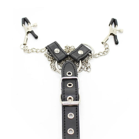 Cock Ring with Linking Chest Strap and Nipple Clamps