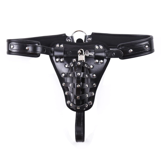 Leather Male Chastity Device Pants Style Pouch with Waist Belt