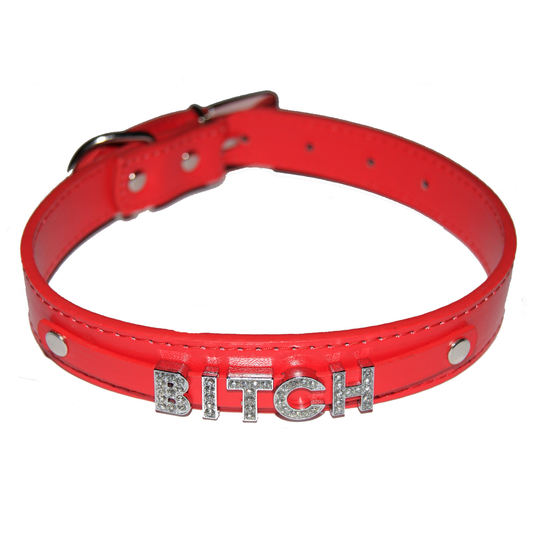 BITCH Fetish Collar Mean Girl Femdom Black, Red, Pink, Blue & White