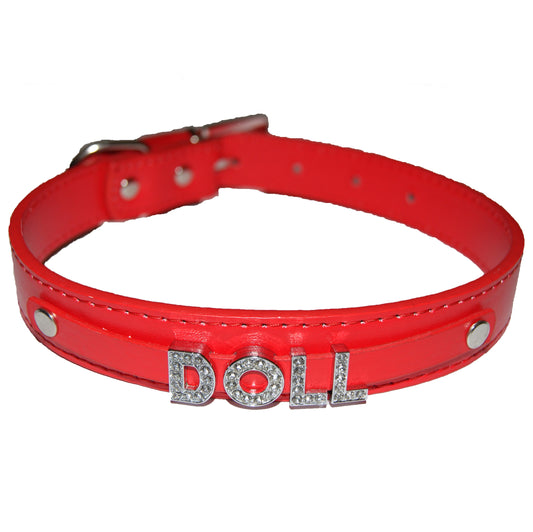 DOLL Fetish Collar Bimbo Sex Slave Black, Red, Pink, Blue & White