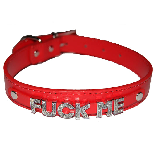 FUCK ME Fetish Collar Slut Nympho Black, Red, Pink, Blue & White