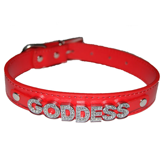 GODDESS Fetish Collar Mean Girl Femdom Black, Red, Pink, Blue & White
