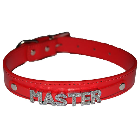 MASTER Fetish Collar Alpha Male Dom Black, Red, Pink, Blue & White
