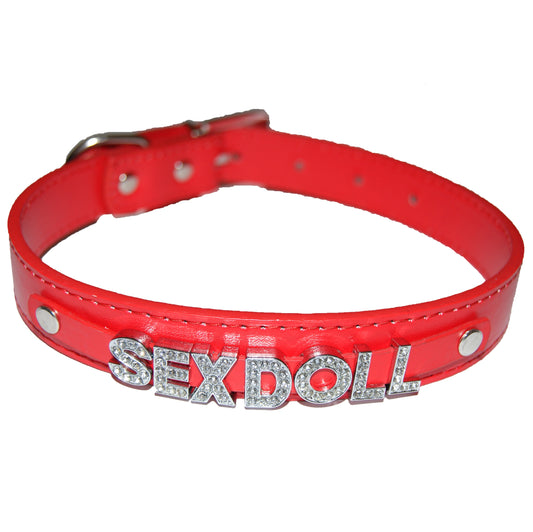 SEXDOLL Fetish Collar Bimbo Trophy Wife Black, Red, Pink, Blue & White