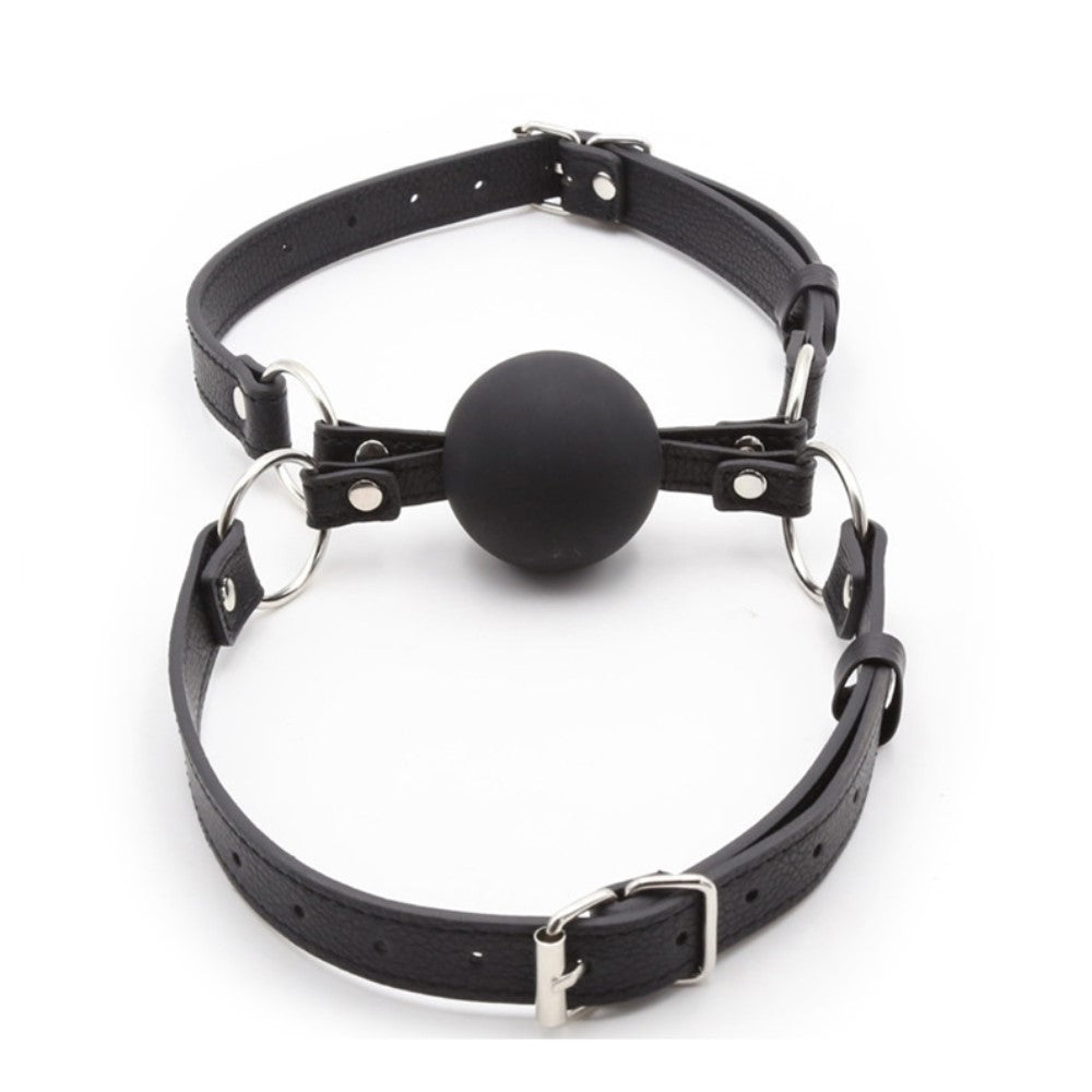 This dual mouth ball gag is intimate and sensual, with just one ball for your sub slaves to share.
