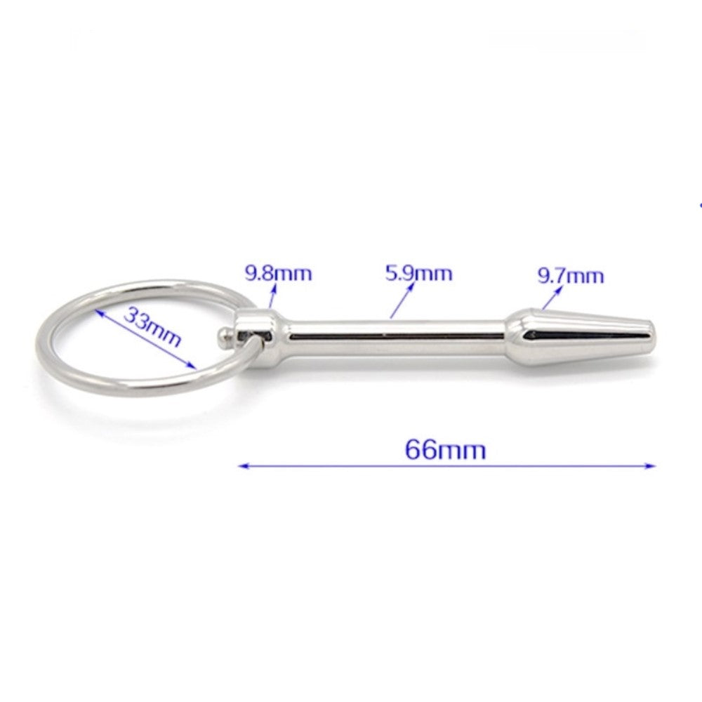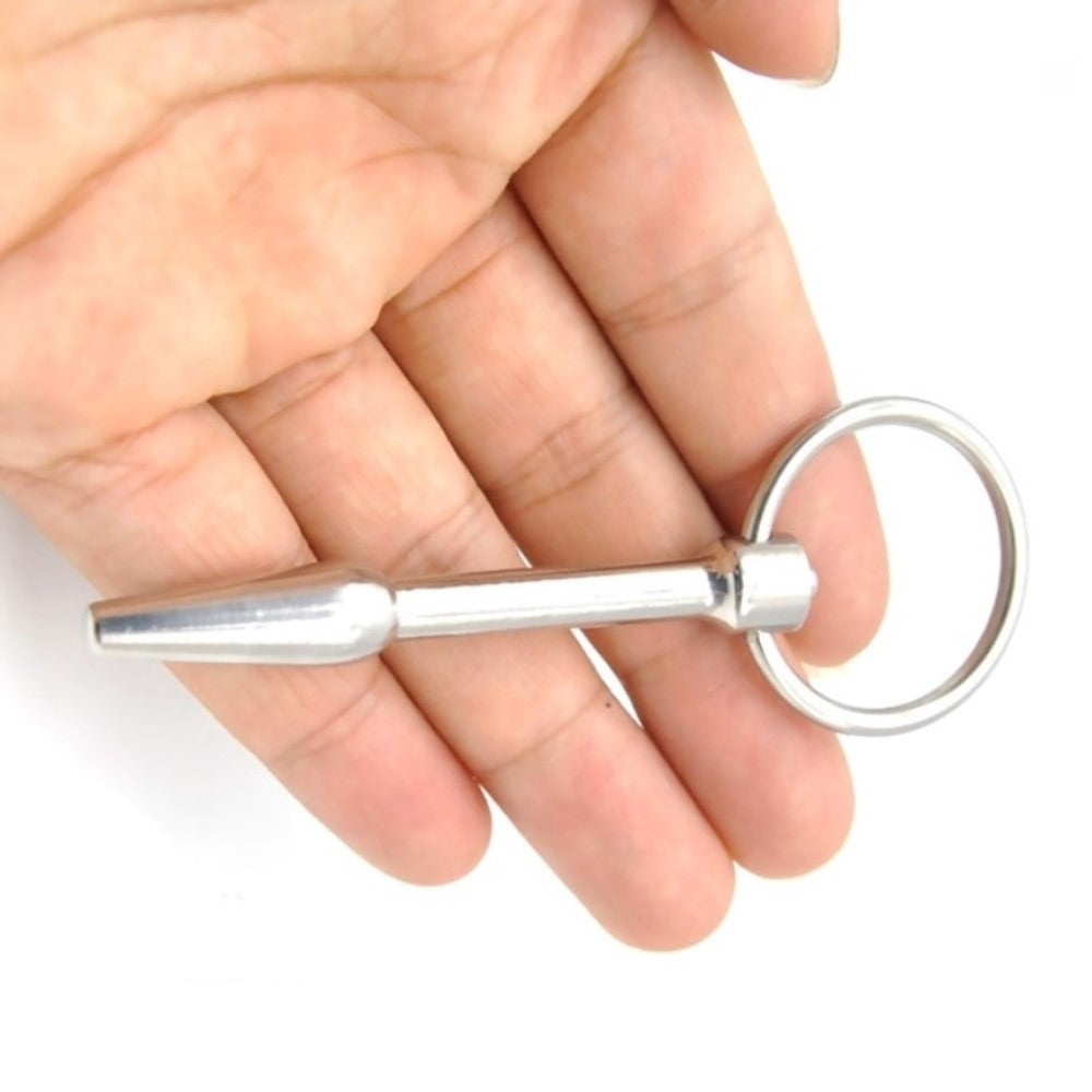A shorter metal (stainless steel) urethral sound to slide down your cock to apply electro stimulation to your most sensitive parts.