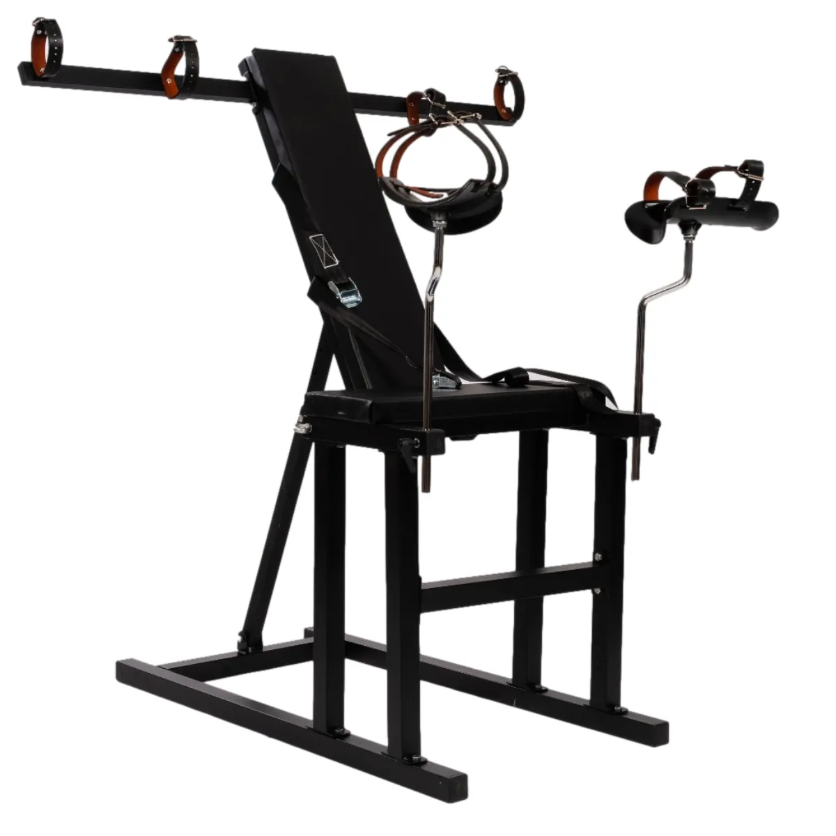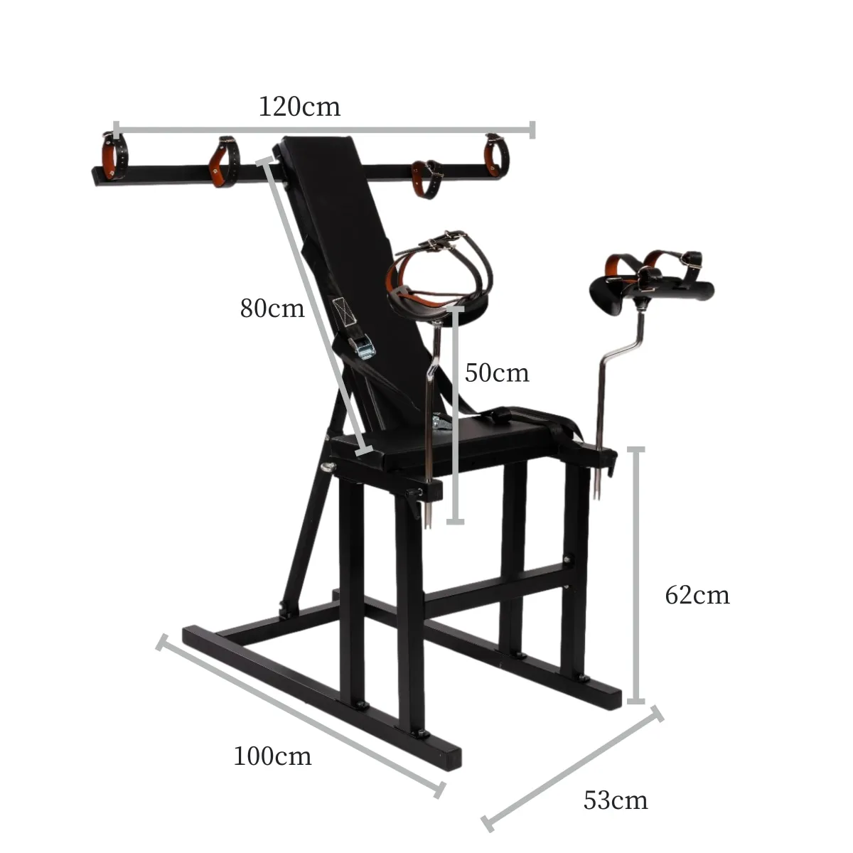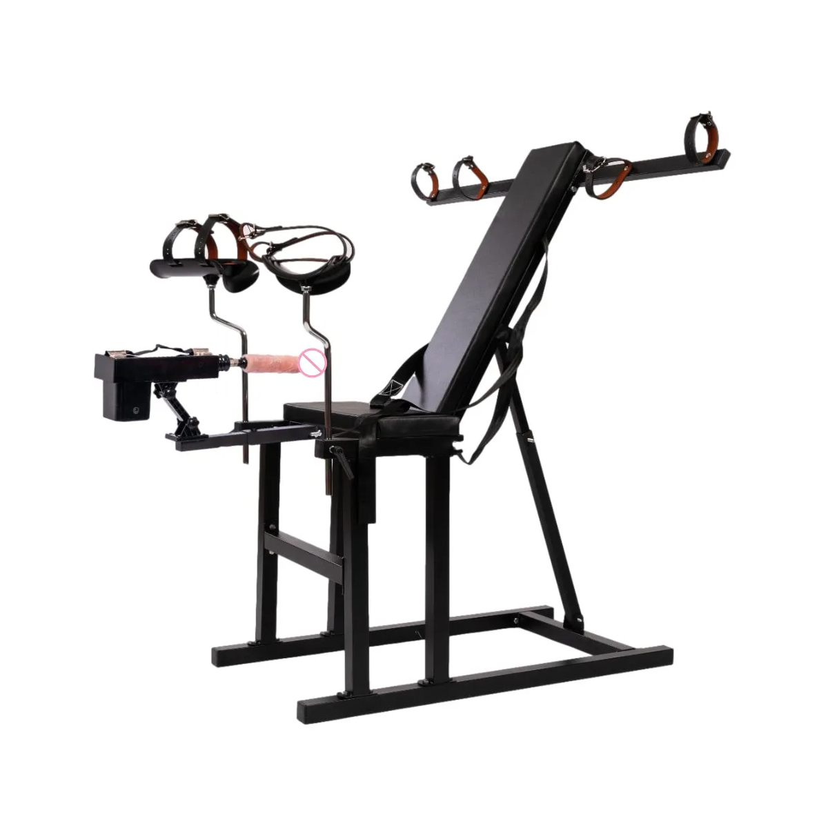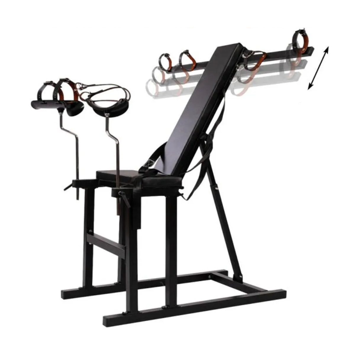 This version comes with arm restraint bars, also available with just wrist cuffs instead.