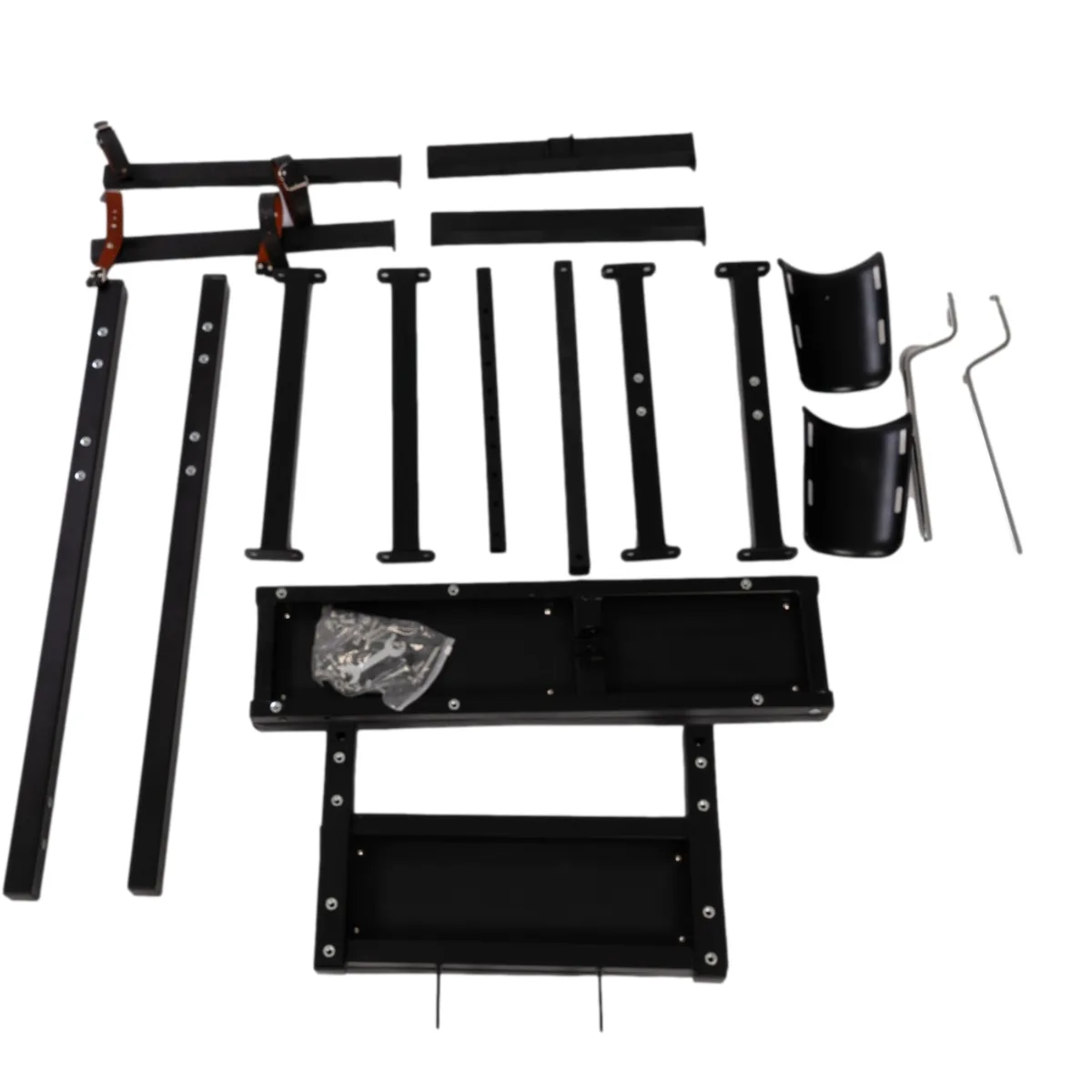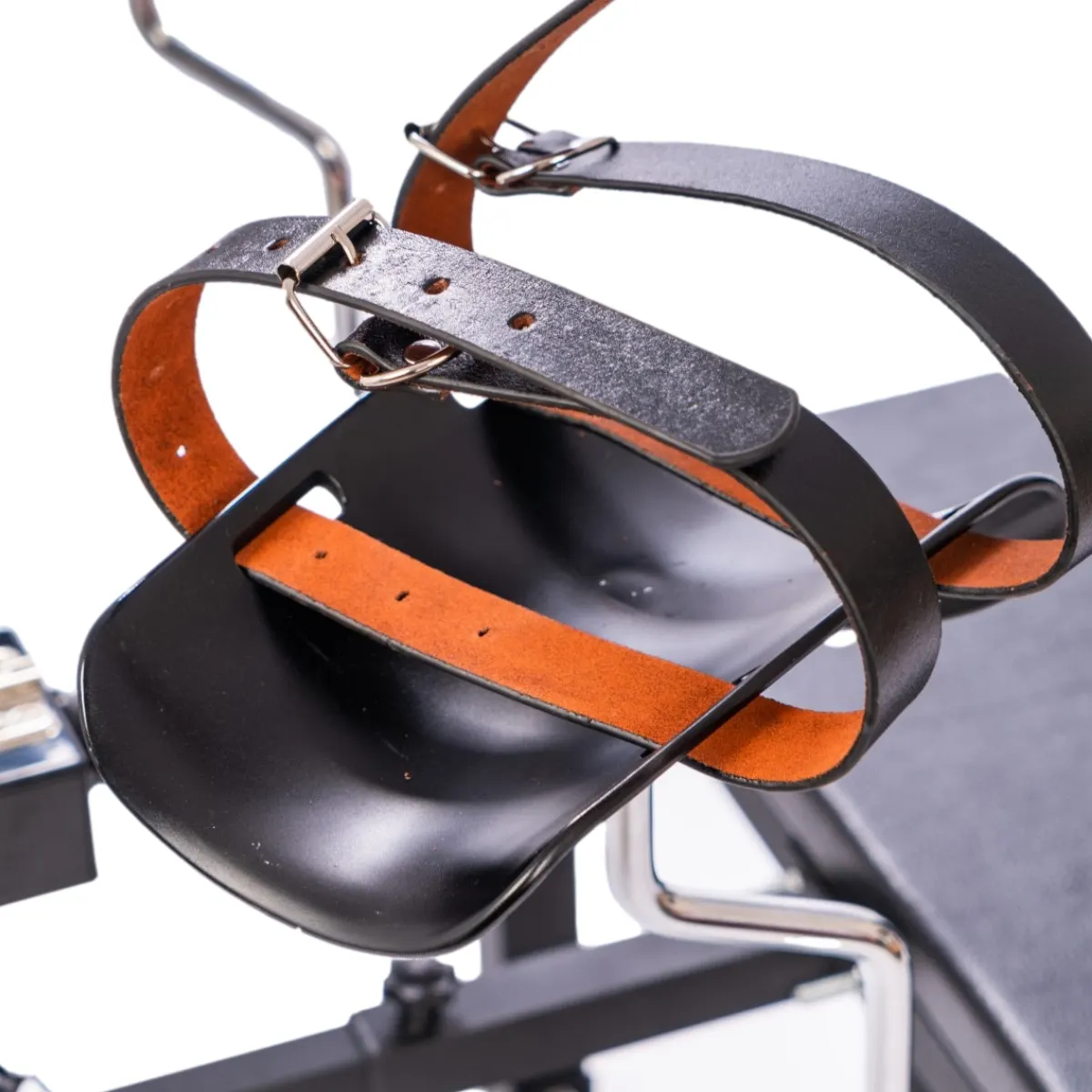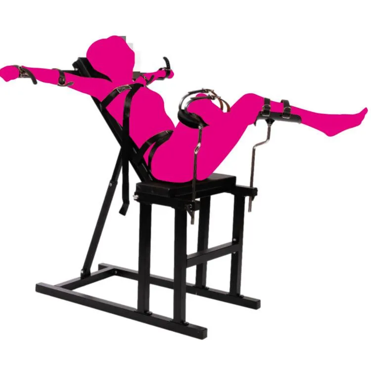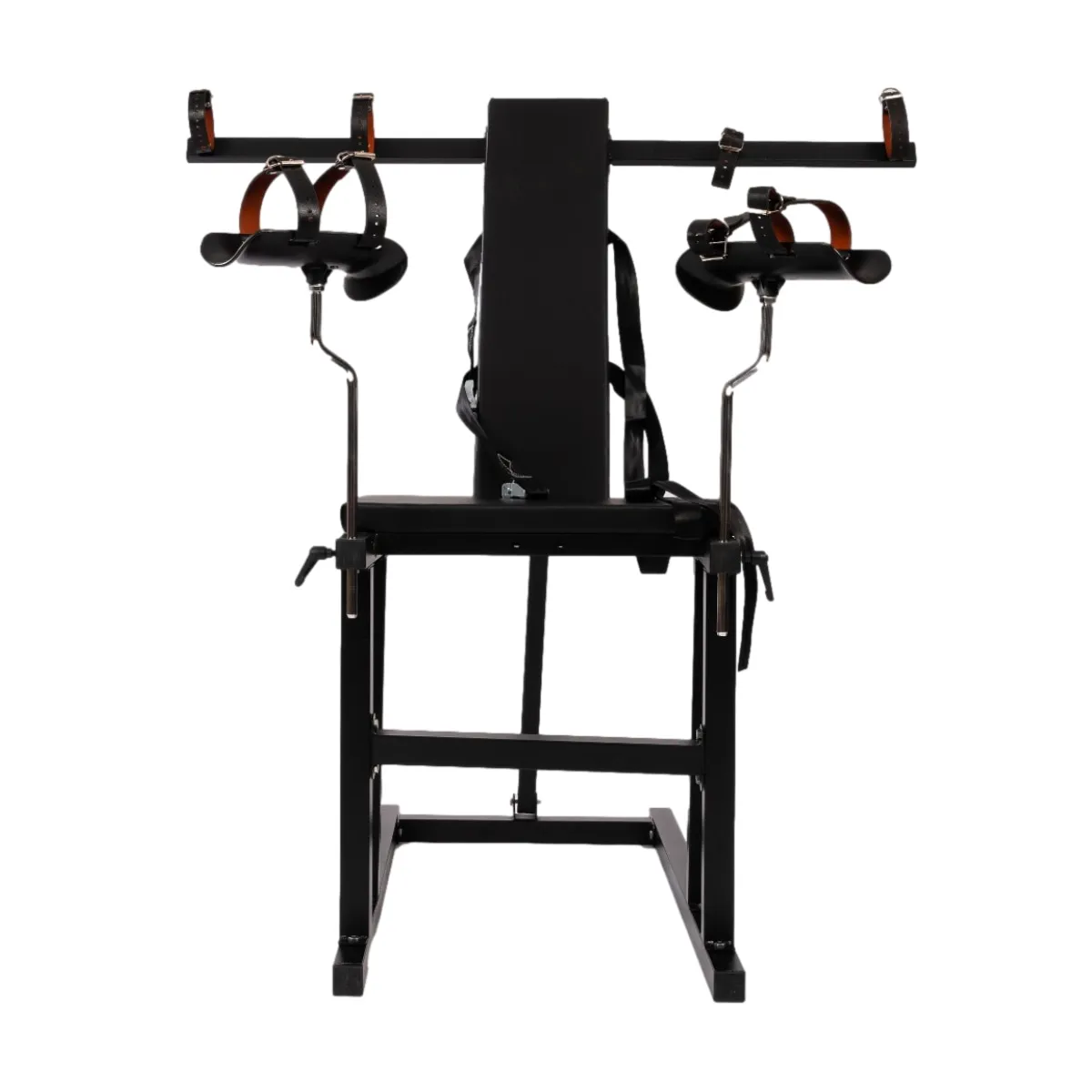 This version comes with arm restraint bars, also available with just wrist cuffs instead.